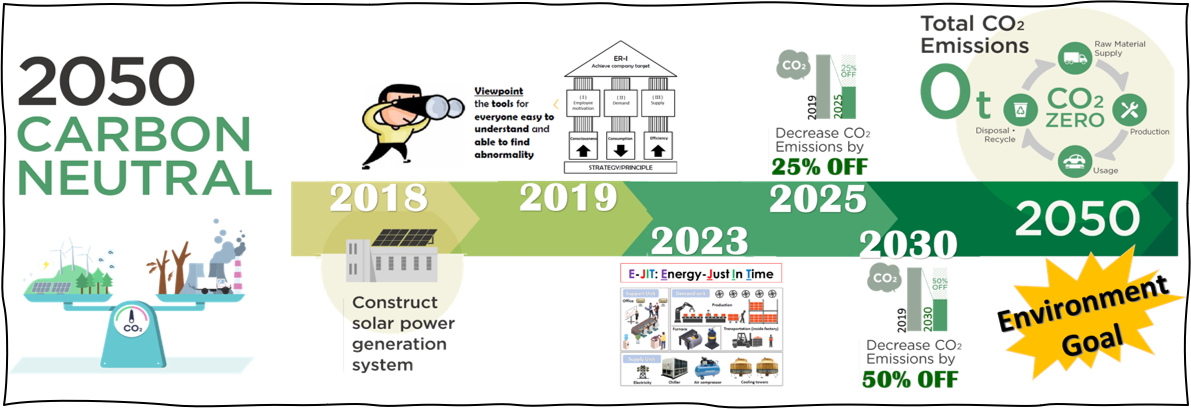 The Toyota Boshoku group recently formulated its “2050 Environmental Vision” based on the belief that it is necessary to take a long-term perspective toward environmental issues and tackle them at an even higher level. Based on the vision, the Toyota Boshoku group has established six Stretch Environmental Goals to be realised by 2050, including the Challenging of achieving Carbon Neutrality by 2050 and Net Zero GHG by 2065