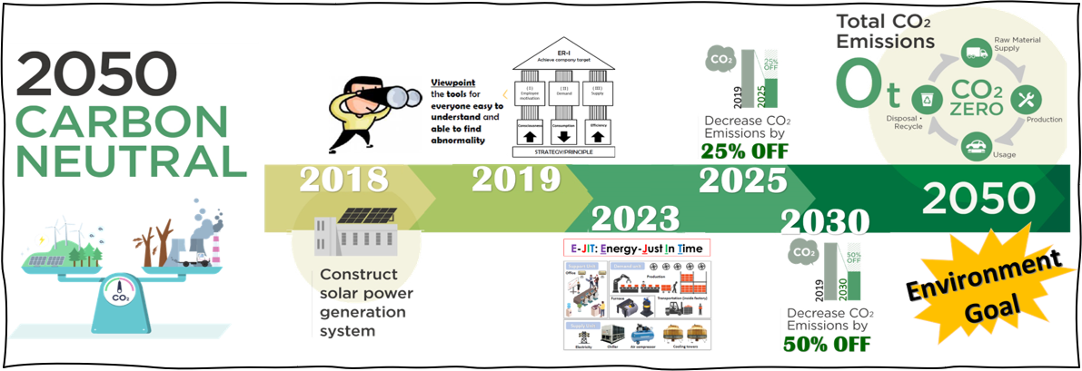 The Toyota Boshoku group recently formulated its “2050 Environmental Vision” based on the belief that it is necessary to take a long-term perspective toward environmental issues and tackle them at an even higher level. Based on the vision, the Toyota Boshoku group has established six Stretch Environmental Goals to be realised by 2050, including the Challenging of achieving Carbon Neutrality by 2050 and Net Zero GHG by 2065